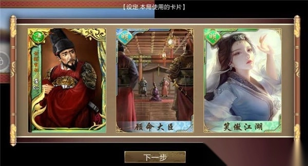 一、开局游戏可以选择【诏,训,宫】,选择开局附加属性和人物设定,主界面新手福利可试玩,卡牌在遗诏获取(需要激活特权)。