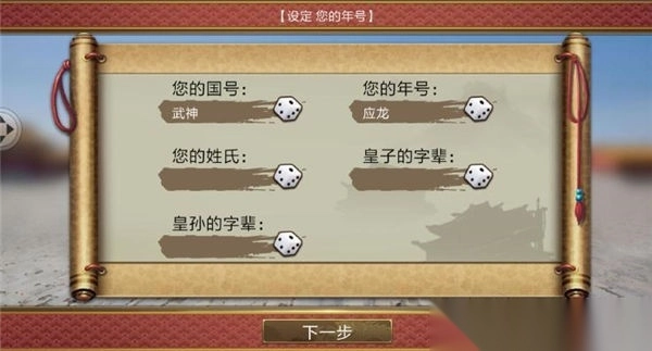 三、开局可以设定【国号,年号,姓氏,皇子、皇孙的字辈、妃子】。