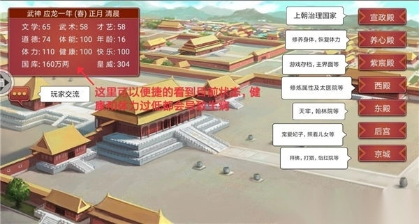 由于皇帝年轻的时候身体好,只要健康不低于50,可以不用到金龙殿休息,将精力集中在内政上。