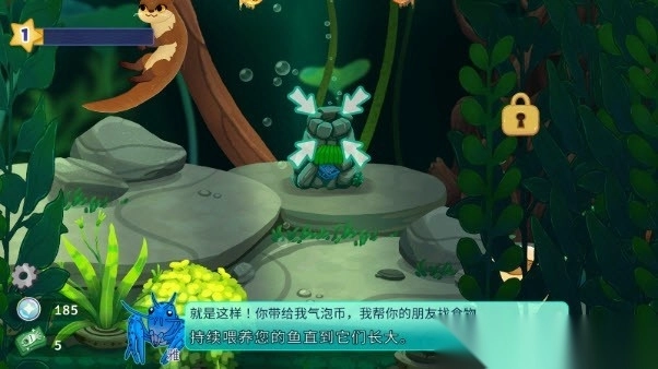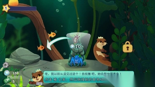 5、把获得的气泡币给“雅”,雅就会为我们提供更多的鱼食,让鱼儿能够长大。