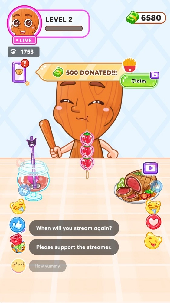 每一次成功的 mukbang 都会让你赚到更多的钱。用你的收入来升级角色的外观,解锁新食物,并提升你的厨房设置。与粉丝互动越多,你就能扩展自己的 mukbang 帝国!