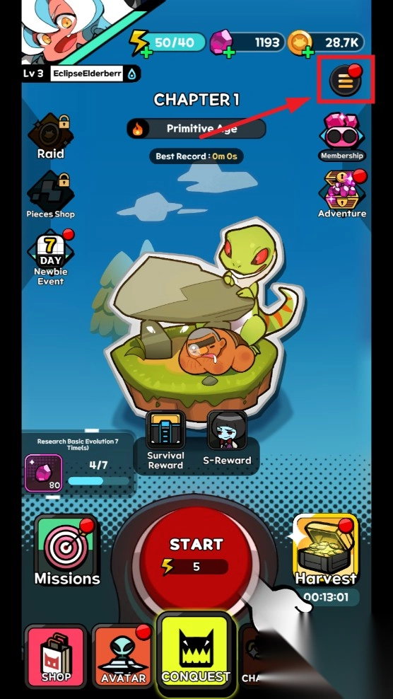 1完成新手教程后,系统会自动跳转至游戏主页面。在该页面,点击界面下方正中间的图标,即可进入功能界面。