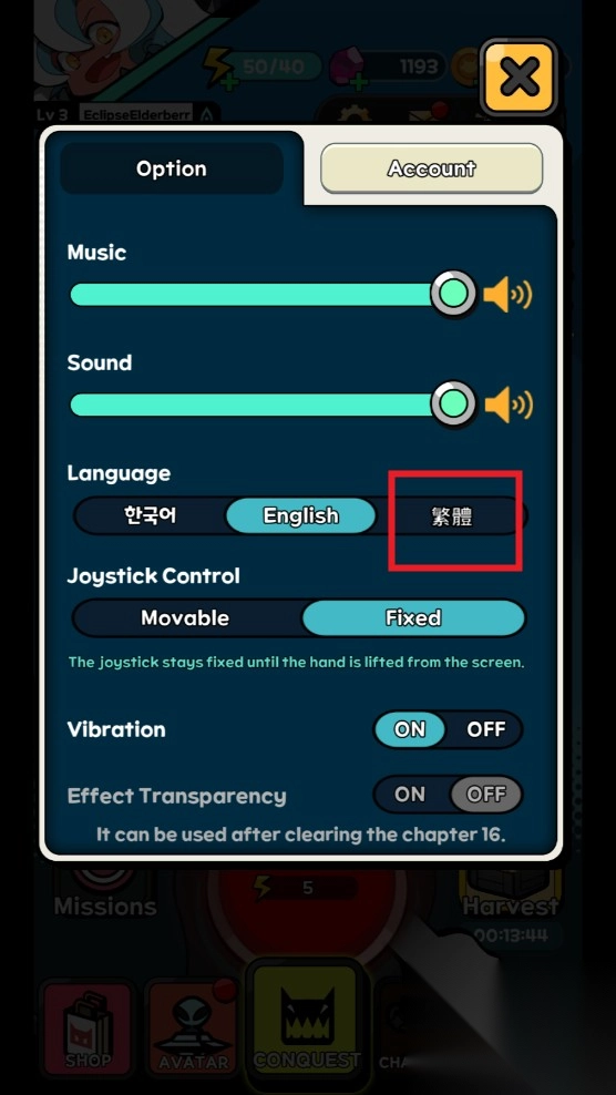 4、下拉找到“Language”语言栏,在语言列表中选择“繁體”作为语言选项。