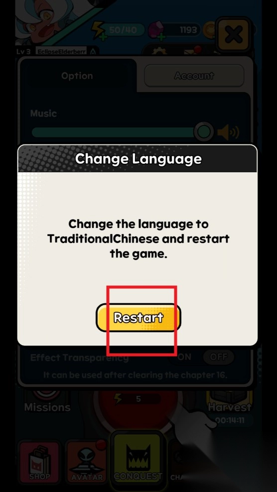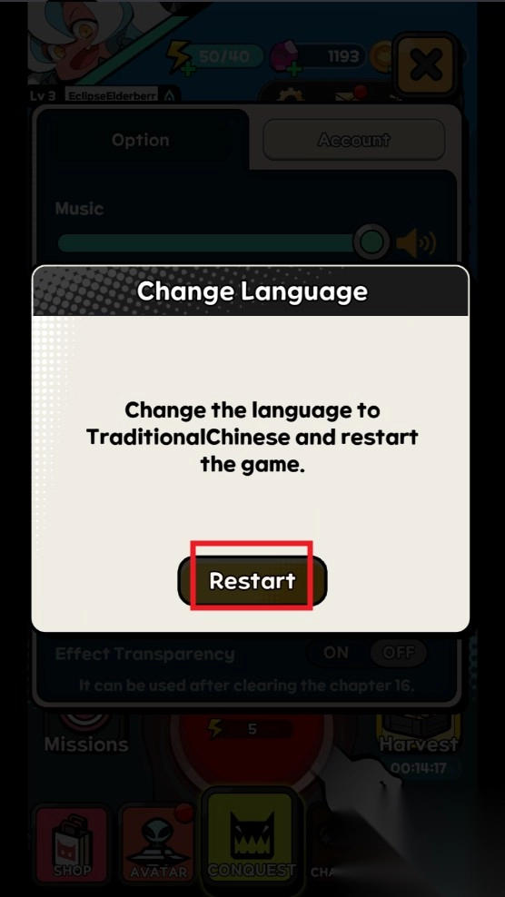5、完成设置后关闭游戏并重新启动,界面语言将切换为中文模式。