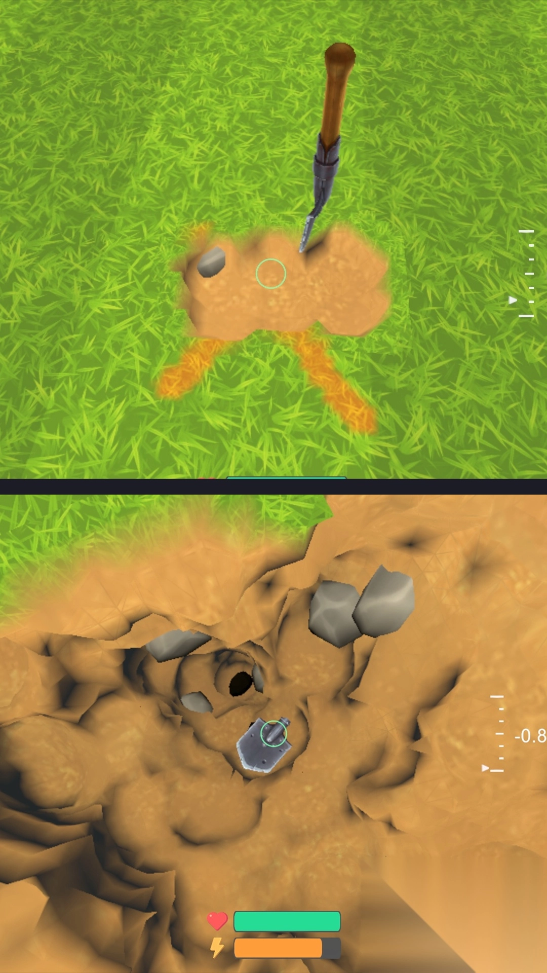 2、挖掘之时,探寻到隐藏的矿石、道具等资源,深入探索地下未知天地,充分满足内心的探索欲望。