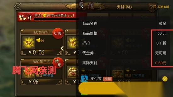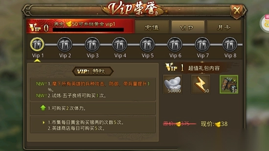 注:VIP等级以游戏内的为准,展示的为原价,游戏内可0.1折购买
