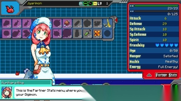 2. 与NPC展开对话,借此熟悉基本的互动形式,例如数码宝贝的喂养,以及在属性、天赋、战斗技能等方面的培育。