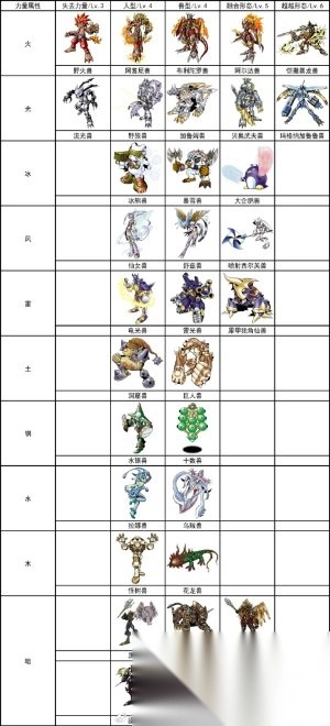 《数码驯兽师2》游戏进化表: