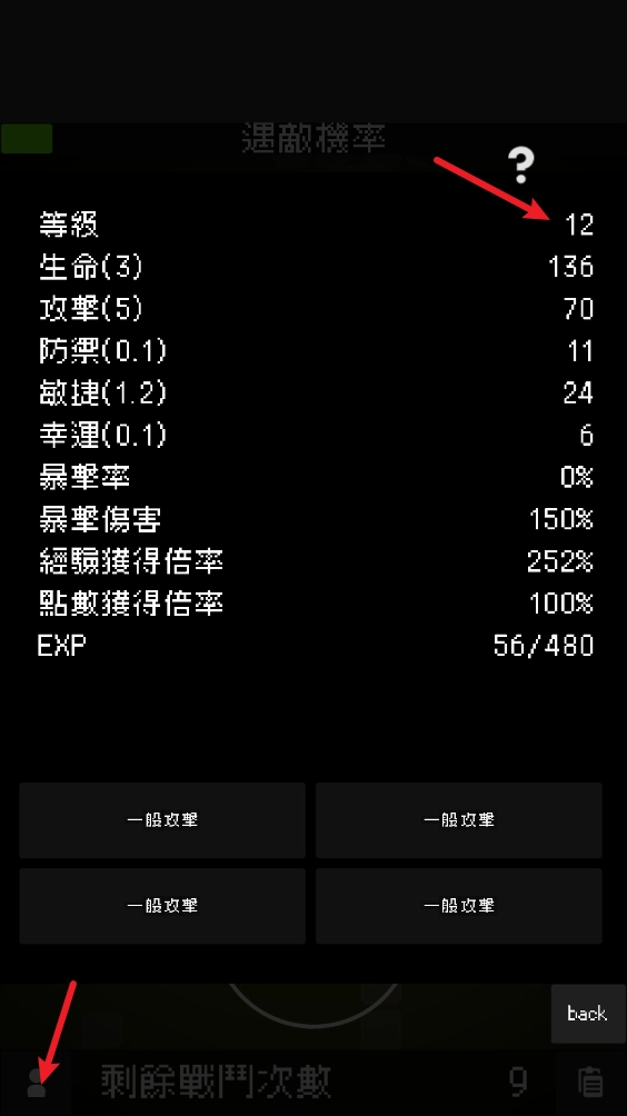 3、点击左下角的小人图标就可以查看自己的等级和其他的一些属性。