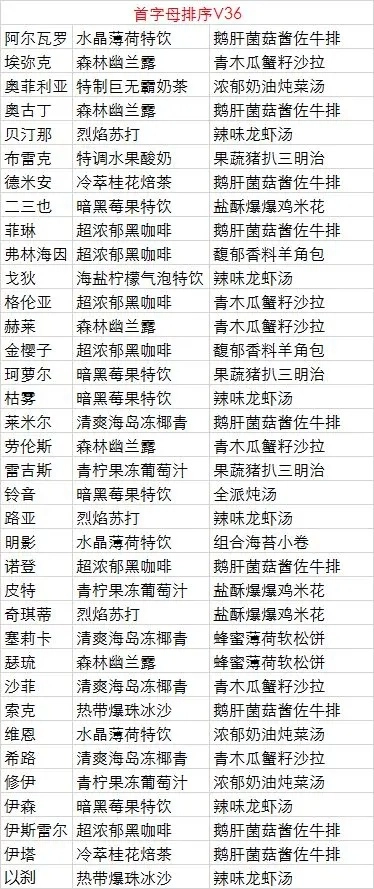 目前慢慢在测角色对饮食的喜爱度,按照人物首字母排