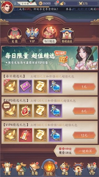 这款游戏运用国风动漫画风,塑造出的各类角色形象新颖且独特,每个角色的技能在战斗时所展现出的特效画面极为炫酷华丽。玩家只需挑选心仪的角色开启放置战斗,即便处于离线状态,也能获取一定收益。在这里,你不仅能畅享挂机放置战斗的玩法,还能领略丰富多彩的剧情。在当前版本中,福利折扣相当丰厚,助力你更迅速地完成升级,进而体验到更多精美的服装与装备。
