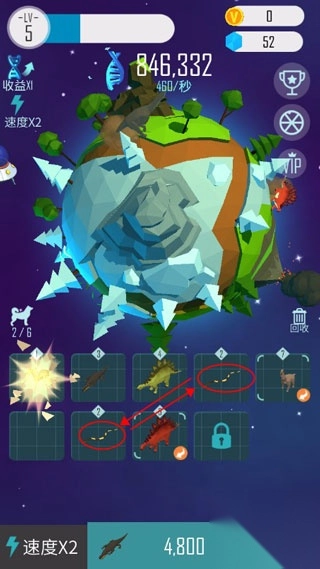 这款游戏采用经典的放置合成玩法,完全不耗费玩家时间,无论何时何地都能畅玩。在游戏里,玩家能将各式各样的物种进行进化合成,像猩猩、猛犸、侏罗纪恐龙这类巨型生物都能通过合成出现。玩家还能在游戏中体验文明的发展、时代的跨越,感受星球进化的历史轨迹,趣味性十足。