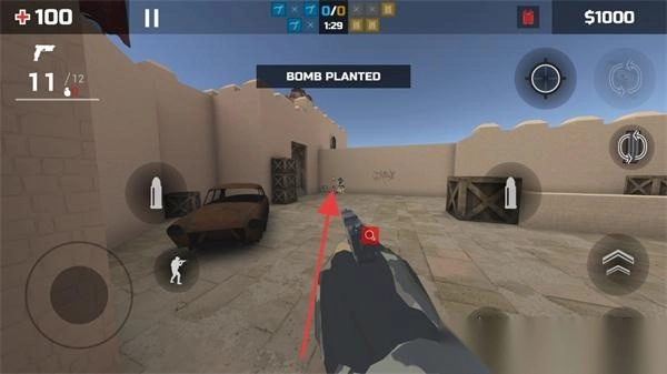 3、在战斗过程中,依照箭头的指示,寻找敌人(例如“BOMB PLANTED”场景里的敌人),通过射击展开对抗。同时,要善于利用地形(像沙漠中的建筑等),以此来完成既定目标,最终赢取胜利。