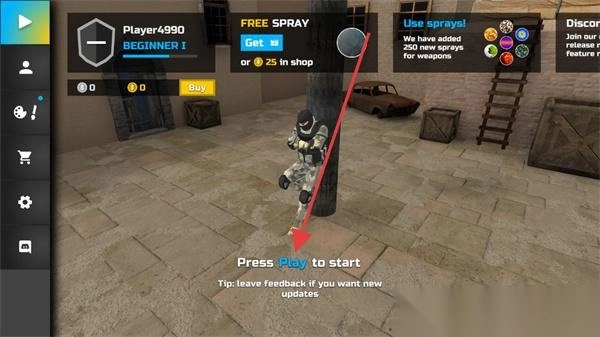 1. 点击“Press Play to start”,开启对战。你能够选择CT(反恐)阵营或者T(恐怖分子)阵营,筹备团队竞技,尽情体验FPS对战的乐趣。