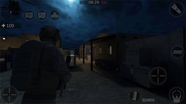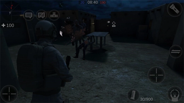 5、进入游戏,左边可以控制人物移动,右边可以进行射击,右上方也可以开启手电筒;