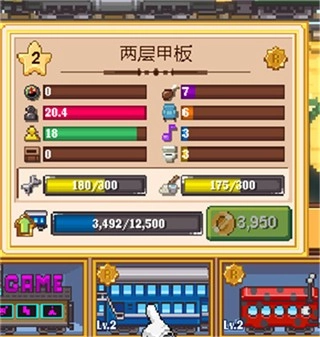 8、成功招聘工程师后,车厢会获得经验值,当经验值满格时就能升级,升级后会强化车厢自带的属性,比如乘客车厢增加可承载人数,食物车厢增加食物数量,货厢增加货物数量。