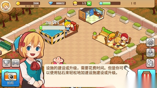 4、建造并升级各种丰富的设施以及装饰品,包括餐厅,烘培店,服装店,电子游戏中心等等