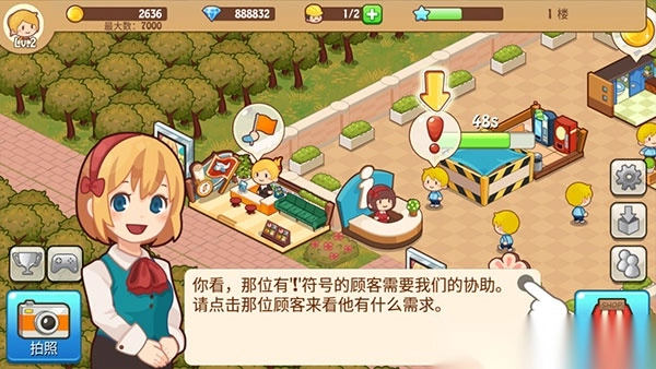 6、若顾客头顶带有“!”符号,便意味着需要我们提供协助。此时,点击该顾客,查看其具体需求,随后点击顾客要前往的设施,助力其抵达目的地。
