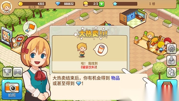 2、除此之外,要设法吸引更多可爱的顾客,举行大热卖,疯狂赚取金币。