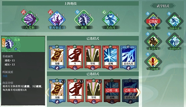 2、不同的招式与每种武学技能相对应,在关卡对战时会随机出现。
