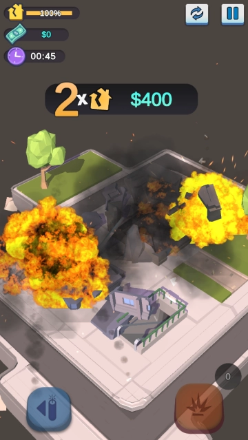 拆楼模拟器手游,一款超解压的模拟游戏,能满足你拆楼的所有想象!在游戏里,你可以肆意放置 TNT 炸弹,一键引爆,瞬间,楼就“轰”的一声没啦!游戏目标很简单,就是让玩家把所有的楼统统炸掉,一个都不剩!每成功炸掉一栋楼,就能获得 500 的奖励,而一枚 TNT 只需 50,是不是超级划算?快来开启炸楼之旅,炸翻它们吧!