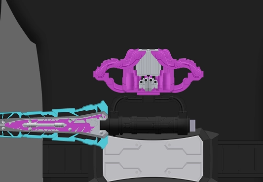 创新要点:机器人的双臂能够被独立武器所替换,其接口与百兽精灵王类似,进而达成“武器 - 机甲”一体化的变形效果。