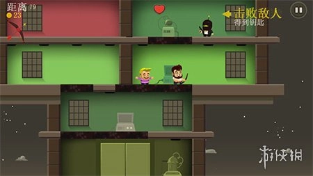 4、第二阶段设定了三个目标:其一,打败关键敌人从而获取钥匙;其二,尽可能多地营救人质,成功解救人质会得到额外奖励;其三,利用获取的钥匙前往楼顶,通过跳跃手段摧毁发射机。