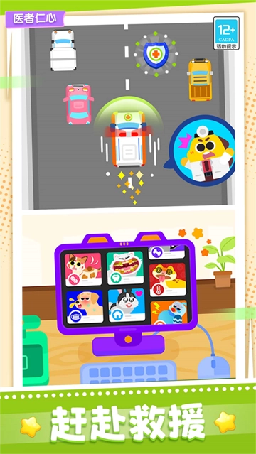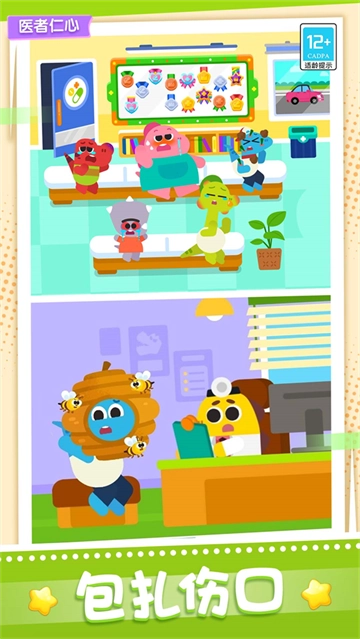 开心小诊所是一款模拟教育类游戏。在游戏里,一旦你穿上白大褂,戴上专业的听诊设备,就摇身一变成为宝贝医院的医生啦,随即能走进医院,为等候室里的客人们看病医治!游戏精心设置了多样场景与病症,朋友们可能遭遇感冒、骨折、过敏等状况。你可以依据朋友们呈现的不同症状,展开针对性治疗,像给他们打针、处理伤口、找出潜藏在身体内的病毒等操作。在这个过程中,会有细致的引导,指引你为朋友们治疗,完全不用担心自己的操作帮不到可爱的朋友们!每次治疗完毕,你都有机会获取可爱贴纸,这可是对你的超级奖赏呢!