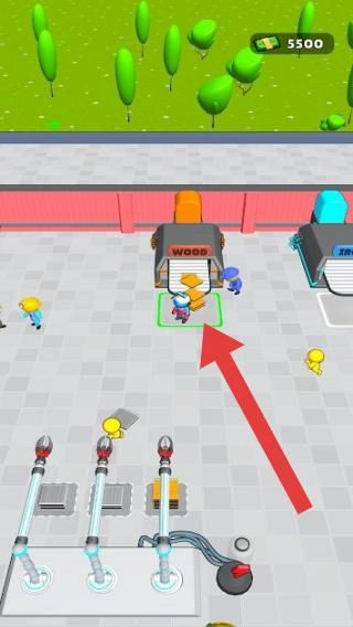3、展现工厂场景,设有与“WOOD”相关的设施,玩家能够操控角色进行资源管理、工厂运营,体验从原料处理直至生产经营的模拟流程,属于经典的闲置工厂经营玩法。