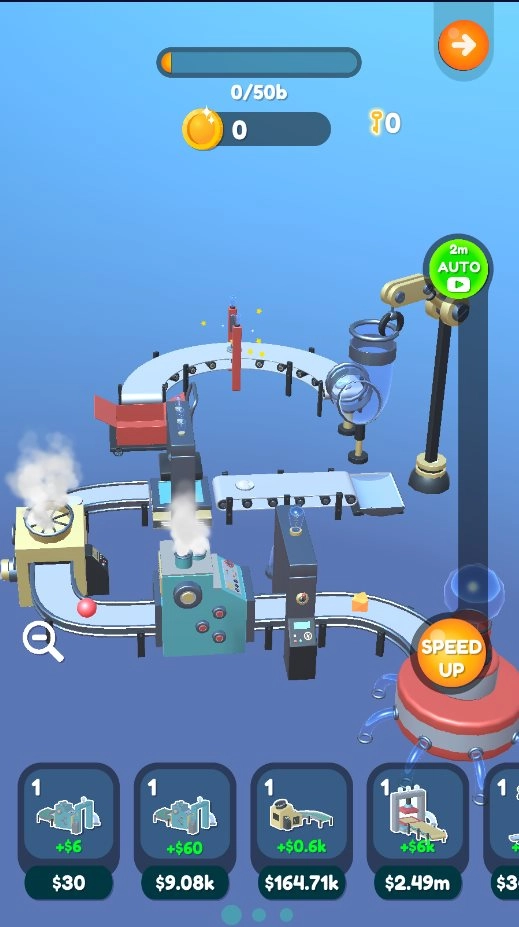 3、用金币提高机械性能,购买更多设备能有效提高生产率。