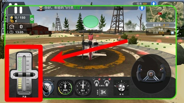 3.操纵左边推杆调整直升机上升与下降,高度变化一目了然。