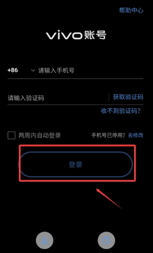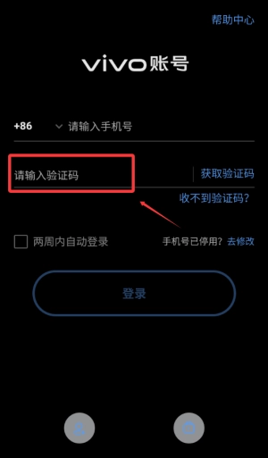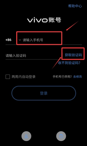 1、输入手机号后点击获取验证码,准备登录vivo账号。