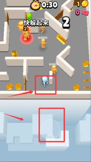 1. 躲藏模式的操作十分简便,只需简单拖拽就能完成位置选择并实现与环境的融合。长按可激活特殊伪装技能,借助视觉盲区巧妙躲避搜寻。