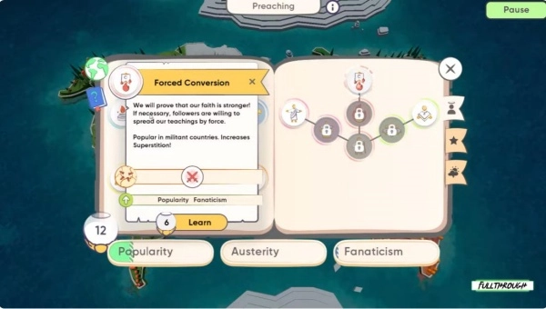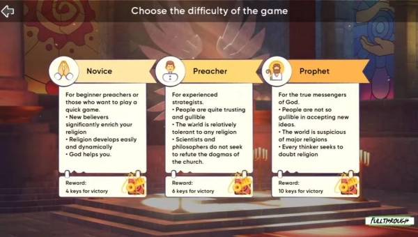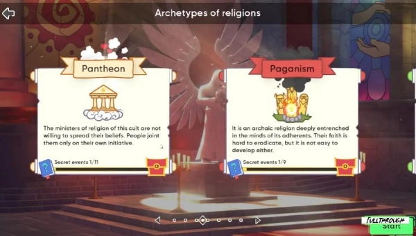 1. 进入游戏之后,从一神论、异教、萨满教等宗教原型中做出选择,以此确定初始路线。