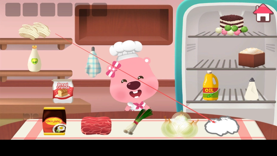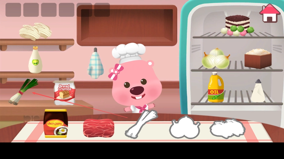 3、充满童趣的厨房场景:厨房场景的设计童趣盎然,厨具的造型圆润且可爱,食材的外观色彩十分鲜艳。操作界面简洁易懂,没有复杂的按钮,能够适应不同年龄段玩家的审美以及操作习惯。