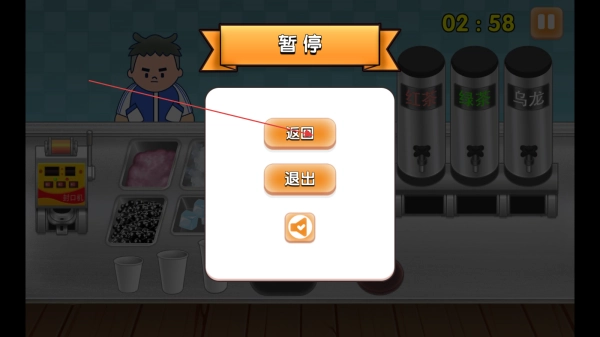 3、配料添加完毕后,把制作好的奶茶放在封口机上,至此完成奶茶制作,通过满足顾客需求来获取金币收入。