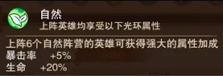 若上阵6名属于自然阵营的英雄,便能获取强大的属性加成。