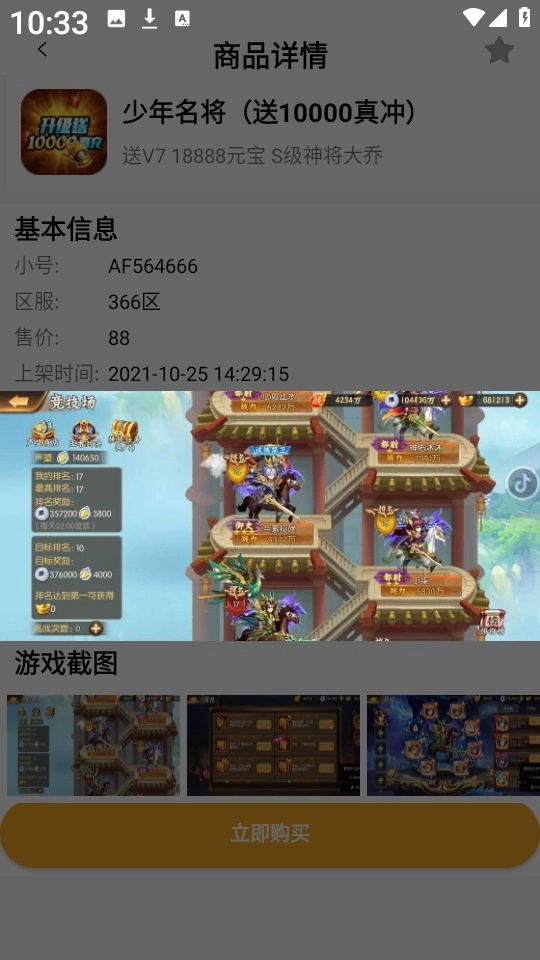 3、随意挑选一款你感兴趣的游戏账号,直接点击“立即购买”就行。