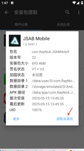 3、于弹出的界面中找寻游戏图标,而后点击选择提取安装包。
