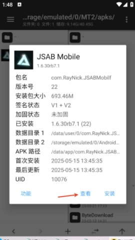 6、这时按顺序点击 Android——data——com.RayNick.JSABMobilf——files,直至进入到如下图所示的界面。