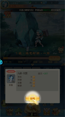 3、成功凿石后会获取装备,点击“穿戴”按钮,就能把装备穿戴在角色身上。