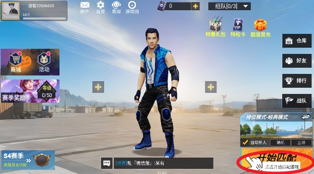 当你成功进入游戏主界面后,只需点击“开始匹配”,即可进入游戏。