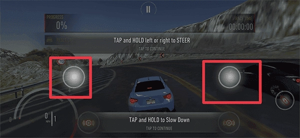 2、以按键操作模式为例,通过按住屏幕左右两边来操控车辆驾驶。