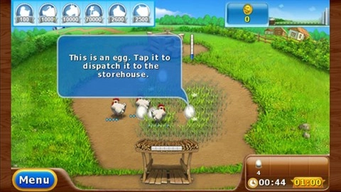 举个例子,第一关的任务是“收集4个鸡蛋”,在此建议一开始就买只母鸡,等着它下蛋就行。