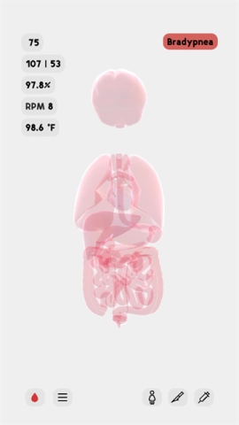 12、点击注射器图标,就能注射药物,进而观察药物产生的效果,或是查看饮食之后的反应。