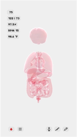 4、通过手指在屏幕上左右拖动,能够把器官分开,便于查看。若想让器官聚拢,只需简单点击屏幕中央即可。