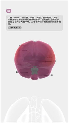 7、再次轻点该器官,就能查看详细说明并标注其构成。若想获取更多知识,同样可通过下方的“了解更多”按钮来实现。