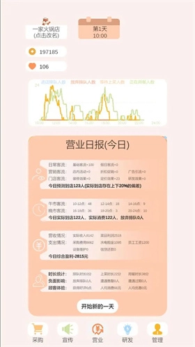 2、每日基础客流量(不包含宣传因素)和研发菜品以及装修设计存在关联,采用不同的经营模式,便能获取大量奖励。