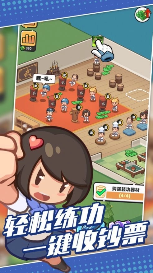3、萌系卡通风格的画面,让玩家喜爱不已,他们会不断去挑战其他武馆。在此过程中,玩家需要提升自身武馆的实力,当武馆人气高涨时,实现盈利就会轻松许多。