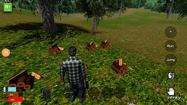5、砍伐树木能够获取木头,木头具备生火、建造房屋等功能。操作过程中,需留意角色左下角的健康状态,并及时进行补充。